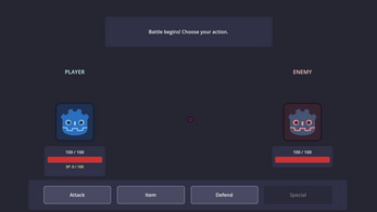 I also thought the battle would look more like the screenshot with effects appearing on screen when a hit is made. The only visuals are a couple buttons and the default Godot icons.